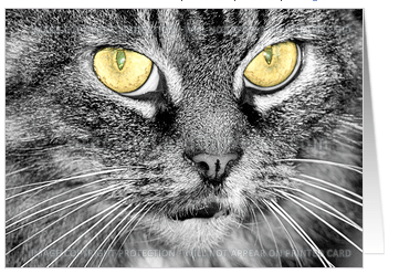 This is by no means my best selling card, but it is among my favorites. This is my neighbor’s cat, who is allowed to roam the neighborhood at will. This cat not only digs in my gardens, but also takes great joy in teasing my Shi Tzu, Kirby, who is probably the same weight as the cat.