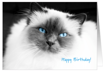 I love birthday cards with cat images on them, so I thought that this image would work well in that context. For the “Happy Birthday” on the front, I picked out a blue that was very similar to Rani’s eye colour and also used one of my favourite fonts, Marydale. For the inner verse, I just channelled Rani and you can read the result! I had a lot of fun making this image and the card it evolved into – I hope that you enjoy the result.