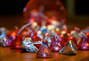 Below is a great example: There is a chocolate kiss in the front with sharp focus, i.e., the Primary Focal Point. Just behind that other candies begin to drop out of focusing range; the secondary focal points which help tell the story of where the kiss came from, with the remaining elements falling completely out of focus. Now for commercial sales, the background really should be cleaned up in this photograph to remove the distraction of the doorjamb, but otherwise this is a well-focused photograph.