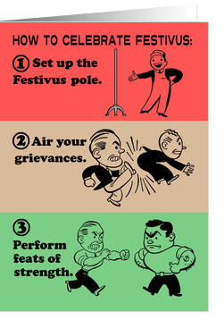 I’ve been creating Festivus cards on GCU for about four years now, and sales improve each year. I also see more Festivus card sellers on there, which is good for all of us—it means Festivus continues to move into the mainstream. Each year, I say to myself that I doubt I’ll be able to come up with any more card designs that I need to add, and every year I end up adding more cards as new ideas come. I guess the bottom line is that I get a kick out of helping people celebrate a relatively new holiday while I get to develop cards that feel fresh and fun at the same time. Partnering with GCU to accomplish this truly is a Festivus miracle!