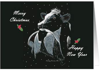 When I do scratchboard, I usually paint it using Photoshop. One of my best selling card is “Another Christmas Moo.”  It was the second scratchboard art I made into a card.