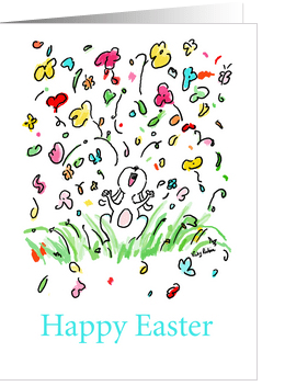 It was exciting to get Design of the Day the other day with this new card. It’s spring-like, and I’m glad spring is here. It came from a doodle that started out as a Fourth of July card—the flowers and hearts were like fireworks. (As I said, I change things a lot as I go!)