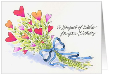 This is one of my popular cards on Greeting Card Universe.  It’s painted it traditionally in watercolor and hand-lettered.  I liked the idea of hearts as flowers – a bouquet of love.