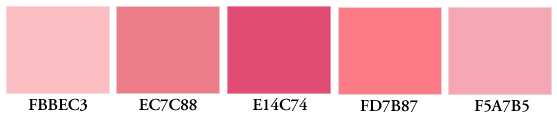 Every artist needs pinks in their repertoire – everything from the palest pastel shades to old roses to vibrant, in your face raspberries and corals. It can be difficult to get a pink right. Too much into the red or purple zones and you’ve lost the lusciousness. Well, here are a pair of pretty in pink palettes to help you out (RGB colors, not CMYK, since that’s what GCU uses). All things girly and sweet, here we come. Enjoy!