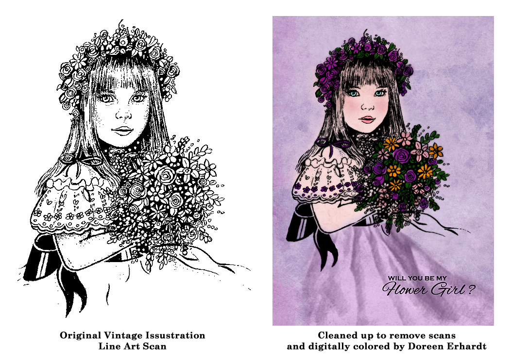 The methods used to restore old photographs apply to restoring vintage paintings for our card purposes. So here’s hoping you’ve been inspired to create new and fantastic work out of old vintage pieces, and to go improve any vintage photos you have on old cards!  Till next week!