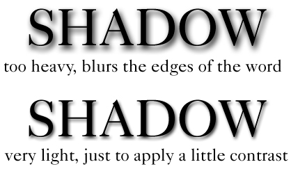 SHADOW EFFECT: Sometimes, using shadow for emphasis can work wonders on a website, but will shadow print well on a greeting card? In my experience, the answer is… sometimes. Too heavy shadow, or shadow that hasn’t been applied properly, WILL NOT work on a greeting card. Shadow that makes a too heavy contrast won’t look good, either. Beware of blurring the lettering. Keep in mind that what looks eye-catching on a computer monitor won’t necessarily pop when printed on a card. TIP: When using darker background colors like green and blue, instead of black shadow, try a shadow in a shade darker or lighter than your background. This can provide the emphasis needed without overdoing it.
