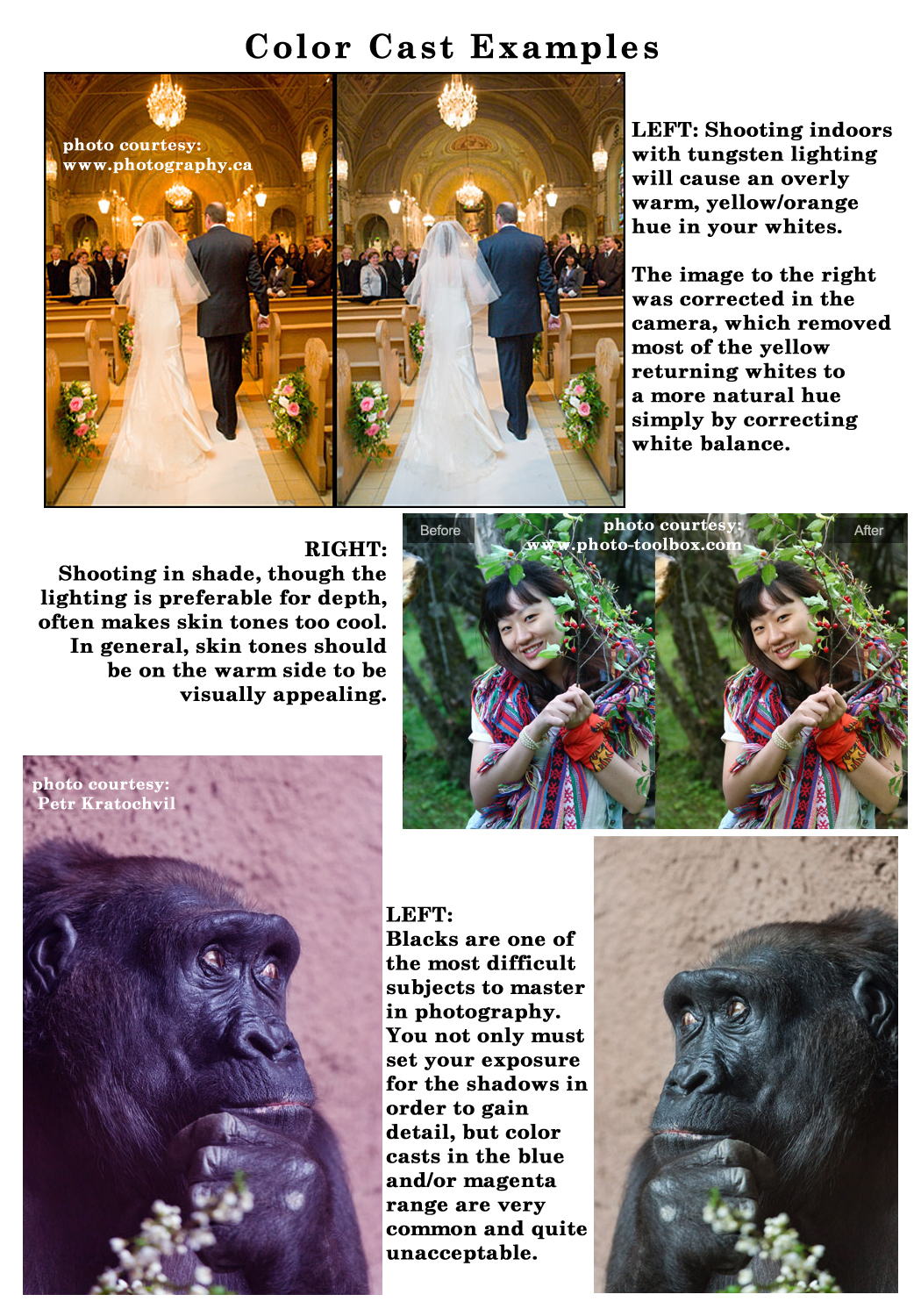 •  Poorly calibrated computer monitors and scanners are frequent causes of unwanted color casts.