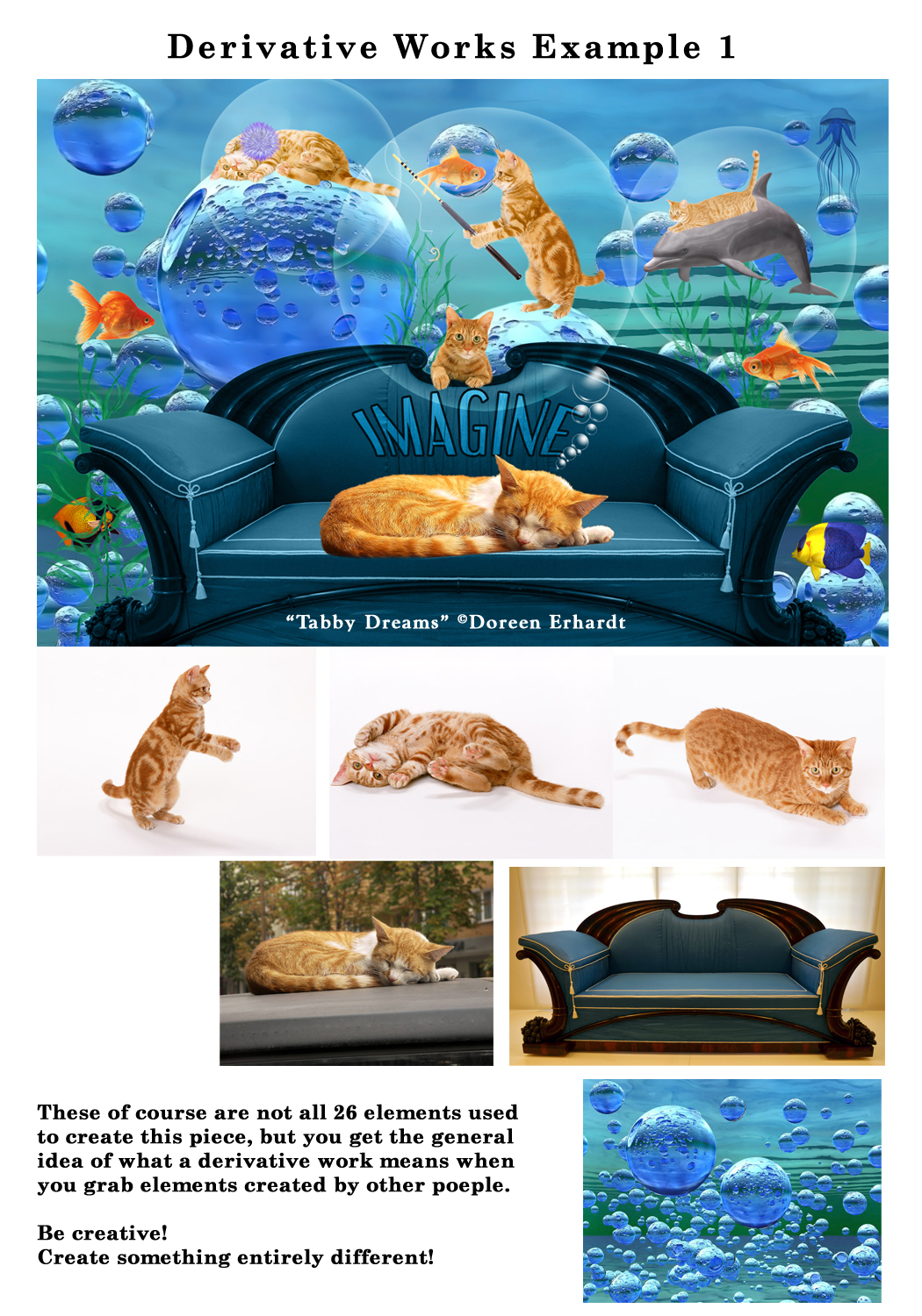 Artists who are new to the creative world, often do not understand the true meaning of a Derivative Work. Many places such as; the MorgueFile license the offered content under a Creative Commons license which DOES NOT mean the content has been released into Public Domain; another common mistake.