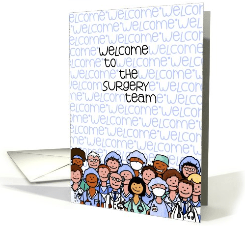 Good. Now what’s the card for? What’s it’s purpose? To welcome new members to a surgical unit.