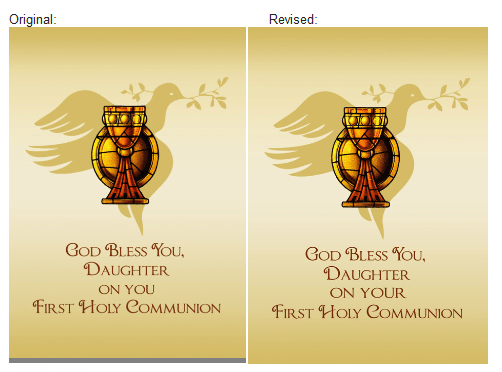 “ON YOU FIRST HOLY COMMUNION” should be “ON YOUR FIRST HOLY COMMUNION”
