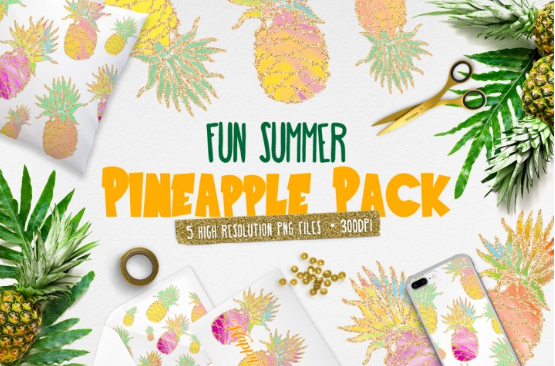 Pineapple Pack is a unique and super colourful pack of 5 different pineapple cliparts (PNG) by Free Pretty Things for You and comes with a complete Commercial License.