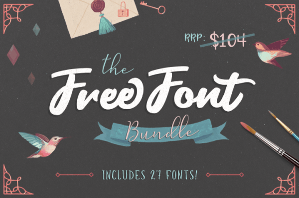 The Hungry Jpeg has decided to give awat a cool FREE font bundle! With this free bundle you will get 27 fonts from 15 families, worth $104!!