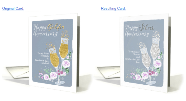 Would it be possible to replace the word golden to silver,and the glasses from gold to silver please?