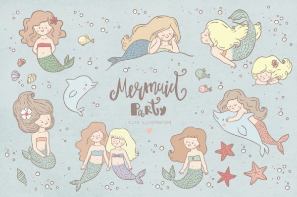 The Hungry Jpeg has a cute collection of underwater fantasy graphics available for you this week. Free Little Mermaid Graphics offers: