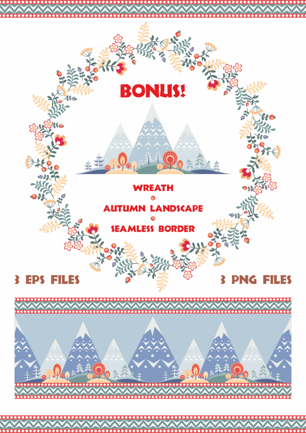 Northern Woodland: Animals and plants in ethnic style is a vector clip package designed by Olga Belova and includes 47 vector clip arts (5 eps files + 47 png files with a transparent background). Png files are saved in high resolution 300dpi. The vector eps files are easily edited. Northern Woodland is only free for a limited time (hurry!! just 2,5 days left!)