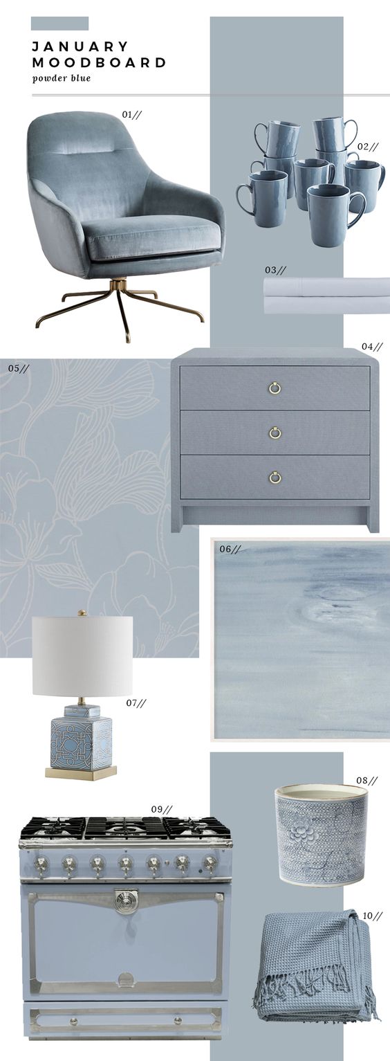One of the new color trends for Autumn/Winter 2020 is Powder Blue. Here is some inspiration: