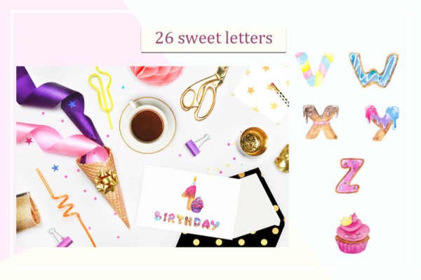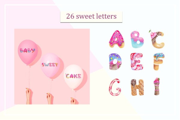 The Hungry JPEG has a very sweet freebie this week. Sweet ABC: Watercolor Alphabet by Ma-i-vi consists of 26 sweet letters, 10 numbers and 4 cute bonus watercolor cakes. Available for one week only, so don’t miss out!