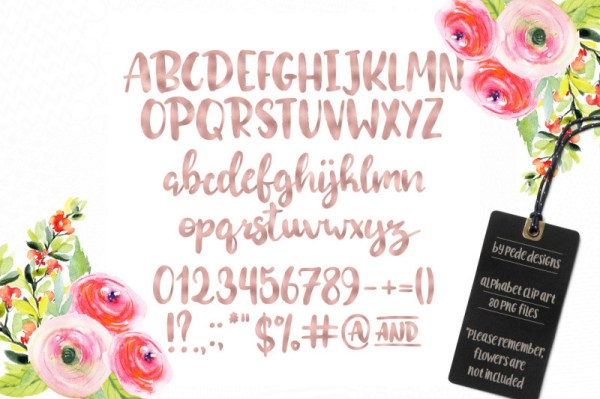 Check out the freebie of this week. This Rose Gold Foil Alphabet (by PeDeDesigns) consists of 80 PNG files (300 dpi). It’s available for free for another 6 days on the Hungry Jpeg site, so don’t miss out!