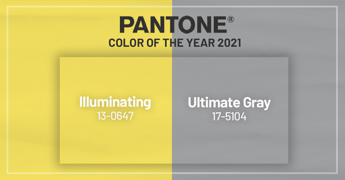 The colors of 2021 are intended as a distinct, but complimentary pair. Ultimate Gray, a neutral shade, is the first gray to be recognized with the honor. The Pantone press release described it as akin to earth elements which are “everlasting and provide a firm foundation.” Illuminating, only the second yellow hue chosen in 22 years, was described as “imbued with solar power.”