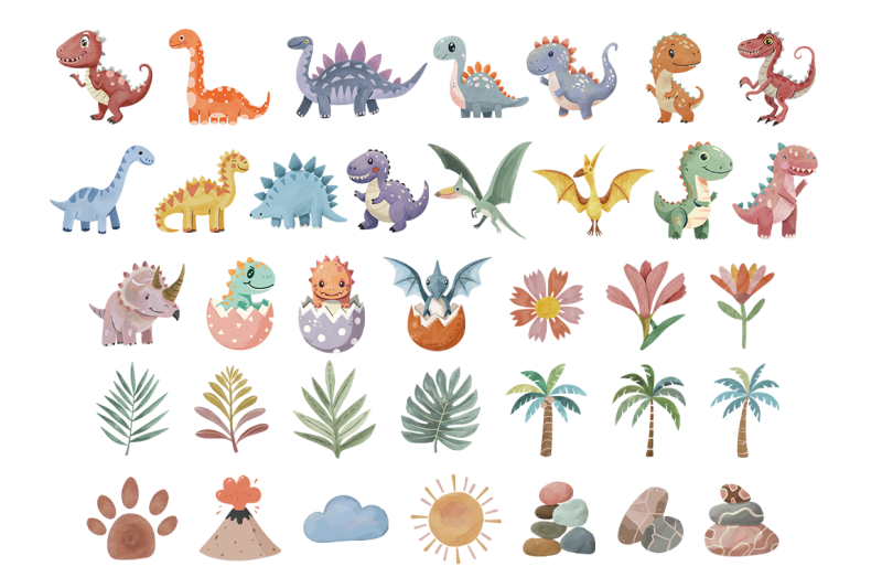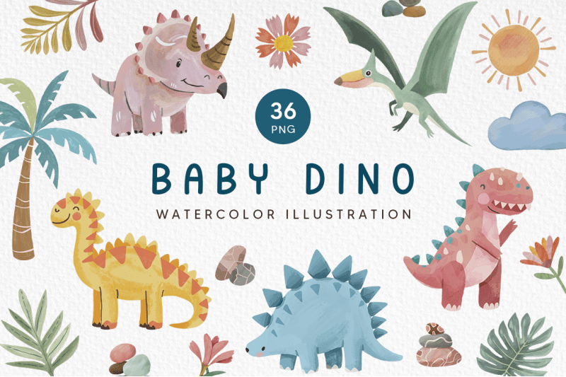 Discover the enchanting charm of our Baby Dino Watercolor Collection by TheHungryJPEG Crafts. Delightful and vibrant, these 36 PNG files feature adorable illustrations of baby dinosaurs in captivating watercolor art. Perfect for nursery decor, kids’ room accents, or crafting projects, each image exudes playful charm and timeless appeal. Add a touch of whimsy to any space with these irresistible dino artworks.
