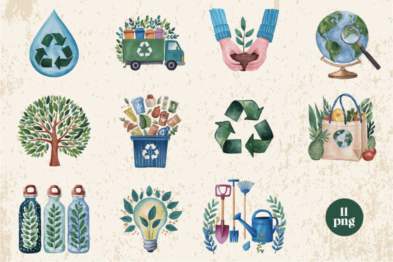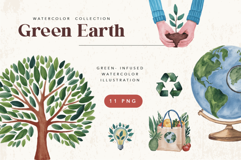 Discover our Green earth Clipart Watercolor Collection exclusively available on TheHungryJPEG.com! This eco-friendly art bundle features 10 high-quality JPEG and PNG files, showcasing nature-inspired illustrations perfect for your creative projects. From lush greenery to earthy tones, these sustainable graphics are ideal for Earth Day designs, environmental campaigns, and any project promoting a green lifestyle.