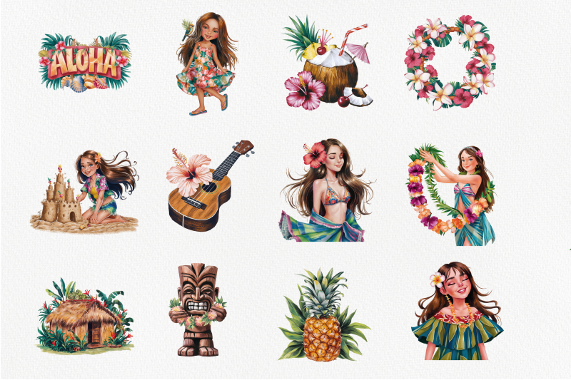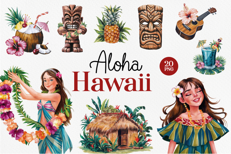 Discover the vibrant FREE Aloha Hawaii Watercolor Collection on TheHungryJPEG.com! This tropical bundle includes 20 stunning JPEG & PNG files featuring Hawaii watercolor clipart, perfect for adding a touch of paradise to your projects. Enjoy beautiful aloha watercolor art with beach-themed illustrations and Hawaiian design elements. Ideal for invitations, scrapbooking, and more. Bring Hawaii to your designs today!