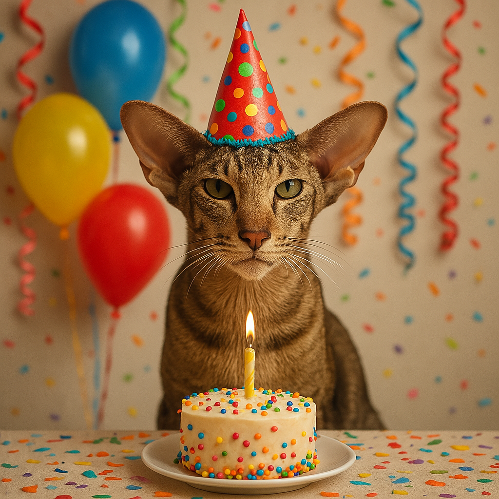“Happy Birthday! May your day be as joyful as a cat with a new box. I promise not to knock over your cake… this time. Purrs and head boops, your feline overlord.”