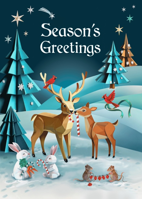 Thank you for entering the July Design Challenge. The judges would like to share their feedback. Overall the judges thought it was a nice choice of colors with visual appeal. Some felt it a little busy, suggesting perhaps removing the carrot bunch at the deer’s feet and the shooting star which would allow the Season’s Greetings text more room to enlarge and move up a bit. Also mentioned was a possible kerning issue with the apostrophe in Seasons.