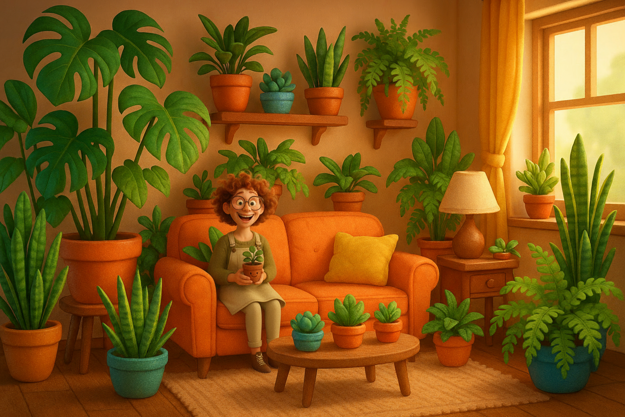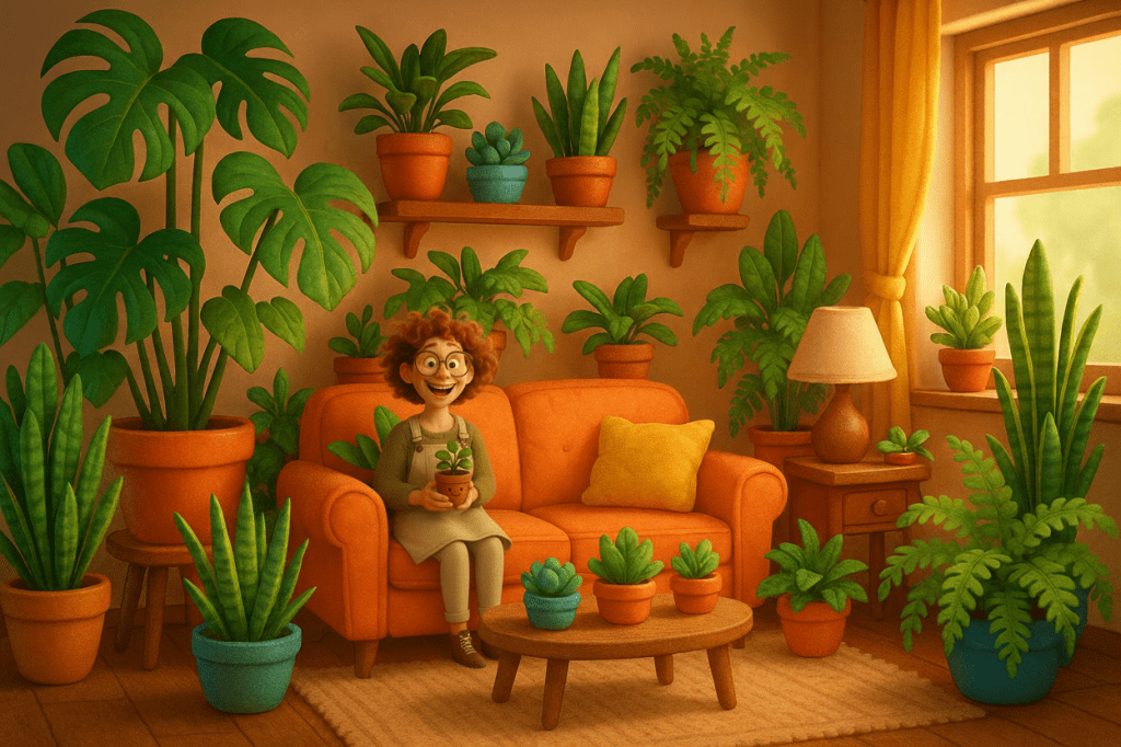 - Humorous takes: exaggerate the “crazy plant lover” lifestyle, like an apartment overflowing with greenery or a person juggling dozens of potted plants.