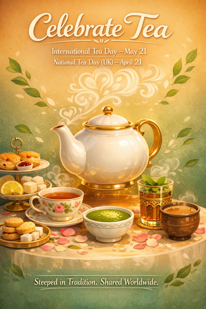 International Tea Day – May 21st celebrates tea’s global impact, from hillside plantations to kitchen tables. It honors the farmers, the cultures, and the everyday ritual of pouring comfort into a cup.