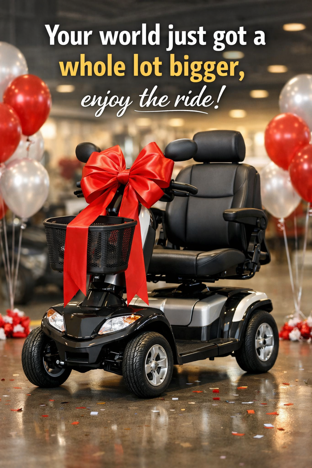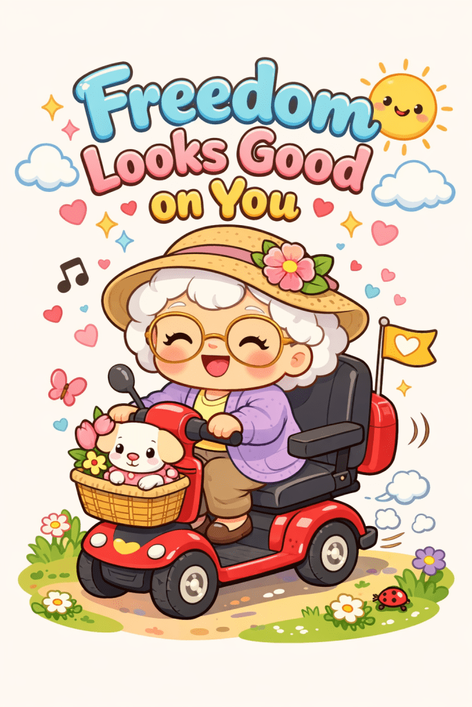 mobility scooter, independence, active aging, new wheels, freedom, accessibility, congratulations, senior life, daily living, independence gift, milestone, lifestyle upgrade, mobility aid, encouragement, getting around